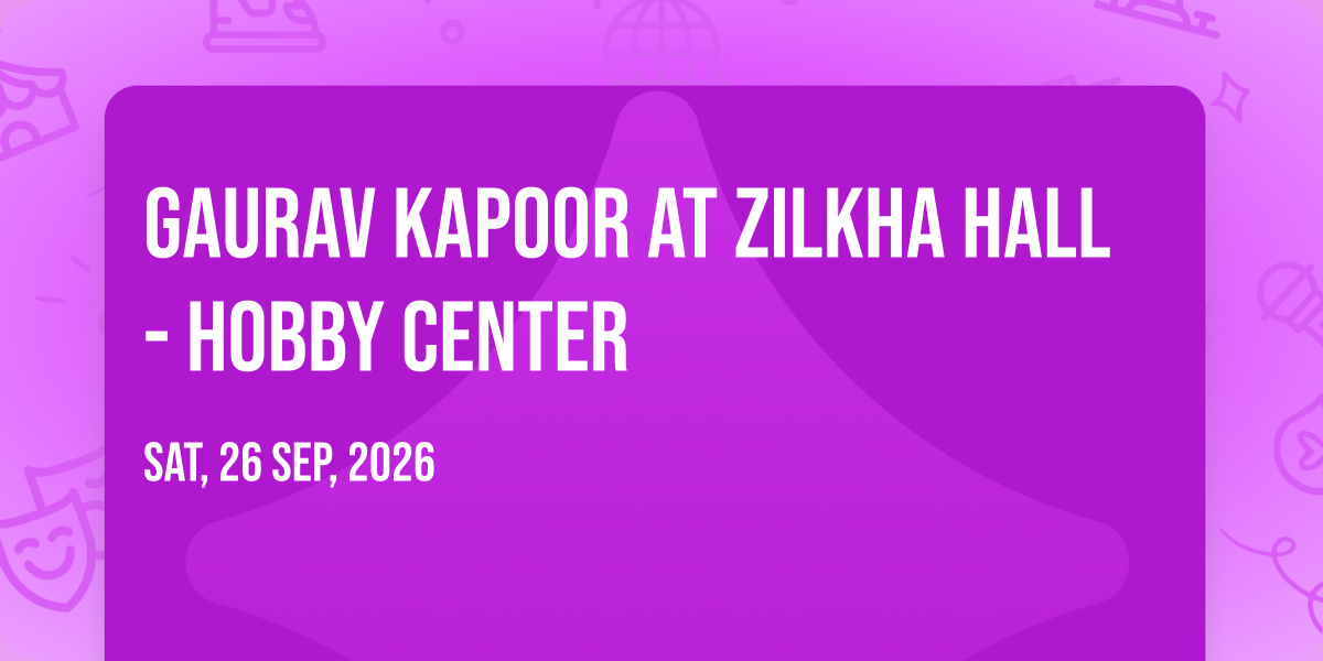 ✨ Embark on an extraordinary journey at Gaurav Kapoor at Zilkha Hall - Hobby Center, where every moment promises to be unforgettable! 🌟 Imagine of transforming Zilkha Hall - Hobby Center in the heart of Houston, TX into a realm of endless possibilities. 📅 Join us on September 26th, 2026 at 05:00 PM for an experience that will challenge your imagination and exceed your expectations. 🎯 This carefully curated event combines the finest elements of entertainment, innovation, and community spirit. Whether you're an adventure seeker, culture enthusiast, or someone looking for unique experiences, this event offers something special for everyone. 🎊 Don't miss this chance to be part of something extraordinary!
