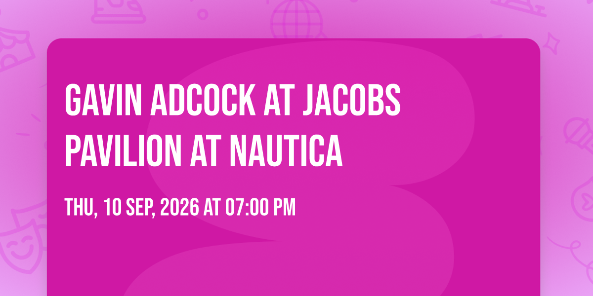 ✨ Discover the extraordinary at Gavin Adcock at Jacobs Pavilion at Nautica, where magic meets reality in ways you've never imagined! 🏛️ Set in Jacobs Pavilion at Nautica nestled in bustling Cleveland, OH, this event promises to be a landmark occasion. 📅 Taking place on September 11th, 2026 at 07:00 PM, it's going to create an atmosphere where every moment becomes a cherished memory. 🌟 Immerse yourself in an experience crafted with attention to every detail, designed to surprise and delight at every turn. They have worked tirelessly to ensure this event exceeds all expectations, bringing together elements of entertainment, innovation, and pure joy. 🎊 Don't miss your chance to be part of this remarkable journey!