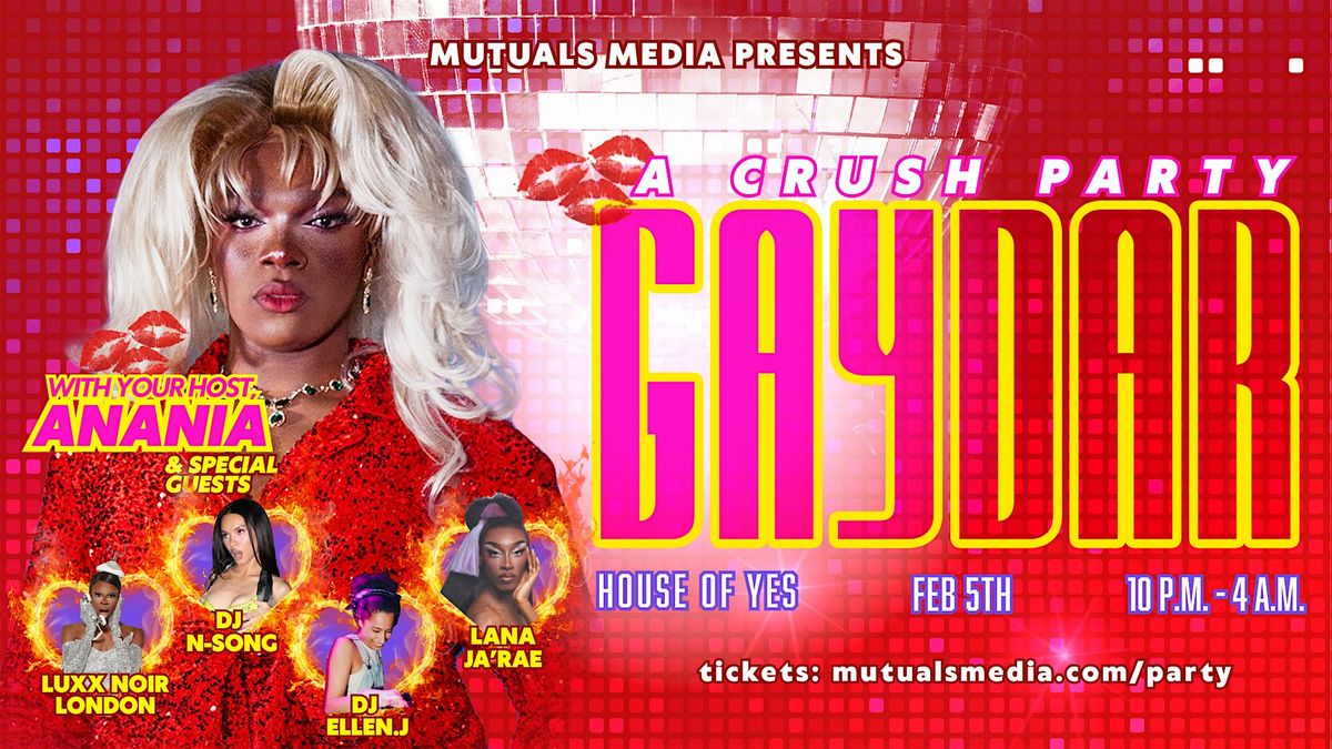 Join us for a night of dancing, drama, and an iconic drag performance starring our vixen of V-Day, ANANIA — all presented by Mutuals Media. Tea will be clocked, rumors will be started, and we’ll find out if Valentine’s Day is gay, straight, or a homophobe. Featuring performances by LUXX NOIR LONDON and LANA JA’RAE, music by N-SONG and DJ ELLEN, and special guests to be announced soon.