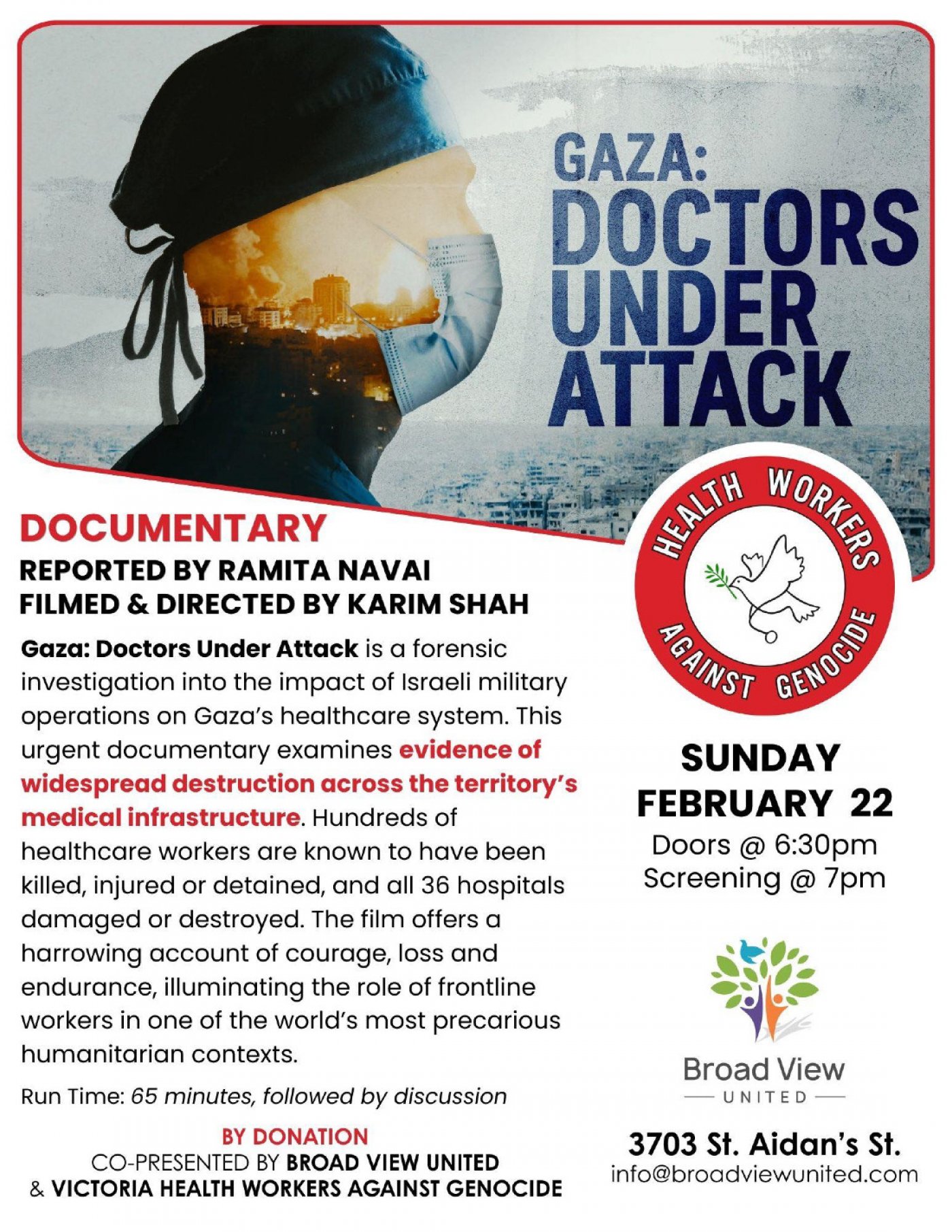 Gaza: Doctors Under Attack is a forensic investigation into the impact of Israeli military operations on Gaza's healthcare system. This urgent documentary examines evidence of widespread destruction across the territory's medical infrastructure. Hundreds of healthcare workers are known to have been killed, injured or detained, and all 36 hospitals damaged or destroyed. The film offers a harrowing account of courage, loss and endurance, illuminating the role of frontline workers in one of the world's most precarious humanitarian contexts.