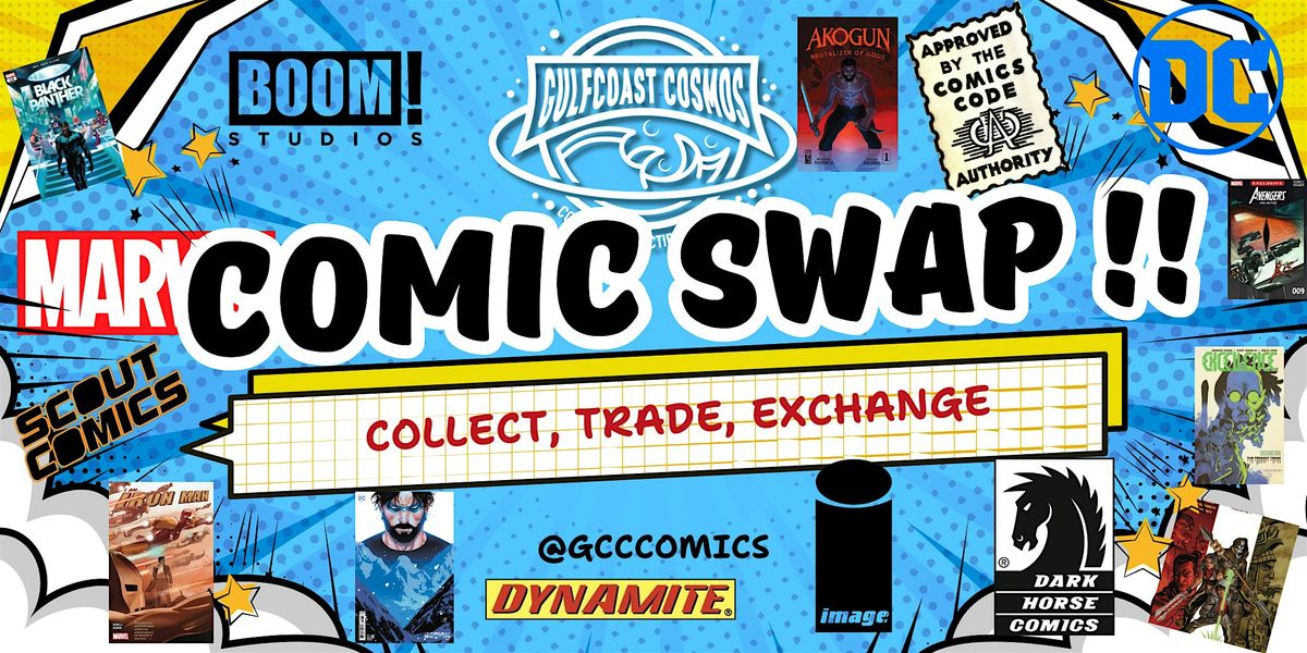 Hey comic lovers! Dive into the world of graphic stories at COMIC SWAP, our awesome in-person event where you can trade your favorite comics with fellow fans. Whether you're a collector or just starting out, it’s the perfect chance to discover new titles, meet cool people, and swap some epic stories. Bring your comics, bring your passion, and let’s make this a legendary meet-up!