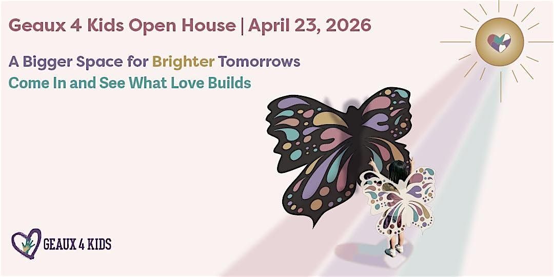 On April 23rd, Geaux 4 Kids is opening the doors to our brand new home in Shreveport, Louisiana and we want you to be the first to walk through them. This is more than an open house. It is a homecoming. A chance for our community to come together, see what your support has made possible, and hear what is coming next for the children we serve.