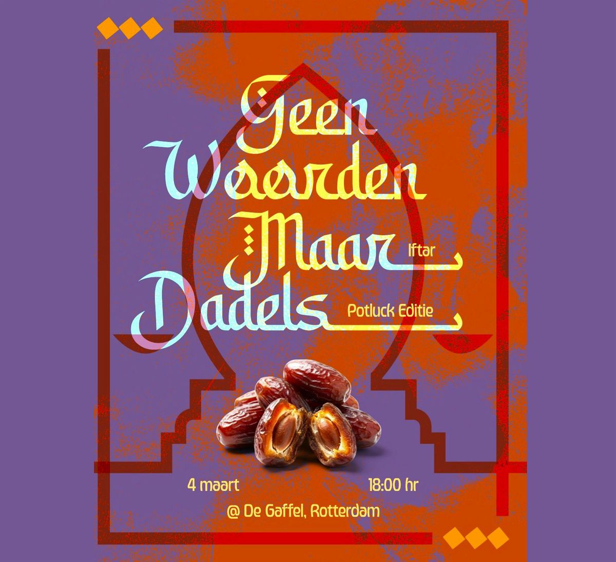 De iftar begint op woensdag 4 maart 2026 om 18.33 uur in Rotterdam. We breken samen het vasten met dadels.
