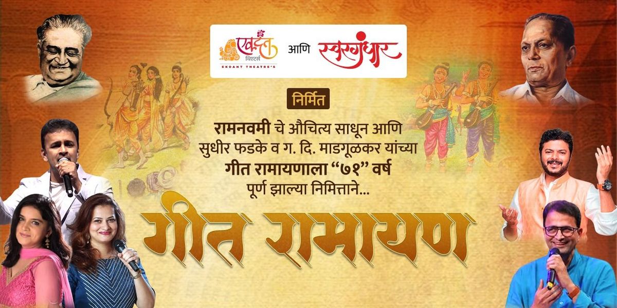Geet Ramayan has always been an integral part of our Culture & Literature for the past six decades. GaDiMa (G. D. Madagulkar) & Babujee’s (SudhirPhadake) masterpiece “Geet Ramayan” will be performed on the auspicious day of Ram Navami in Thane & Vileparle.