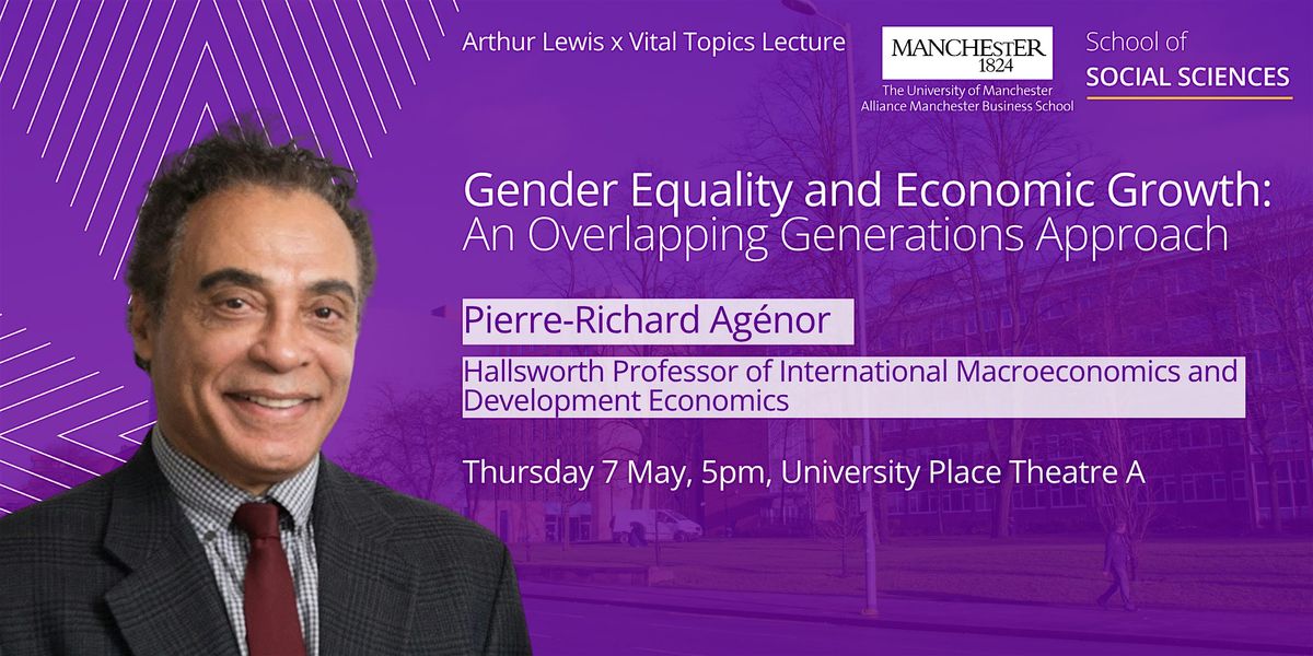 Join us as esteemed economist Pierre-Richard Agénor shared insights from his upcoming book ‘Gender Equality and Economic Growth: An Overlapping Generations Approach’, exploring the economic and political challenges faced in the moral task of closing the gender gap. The Arthur Lewis x Vital Topics lecture is hosted jointly by the School of Social Sciences and Alliance Manchester Business School.