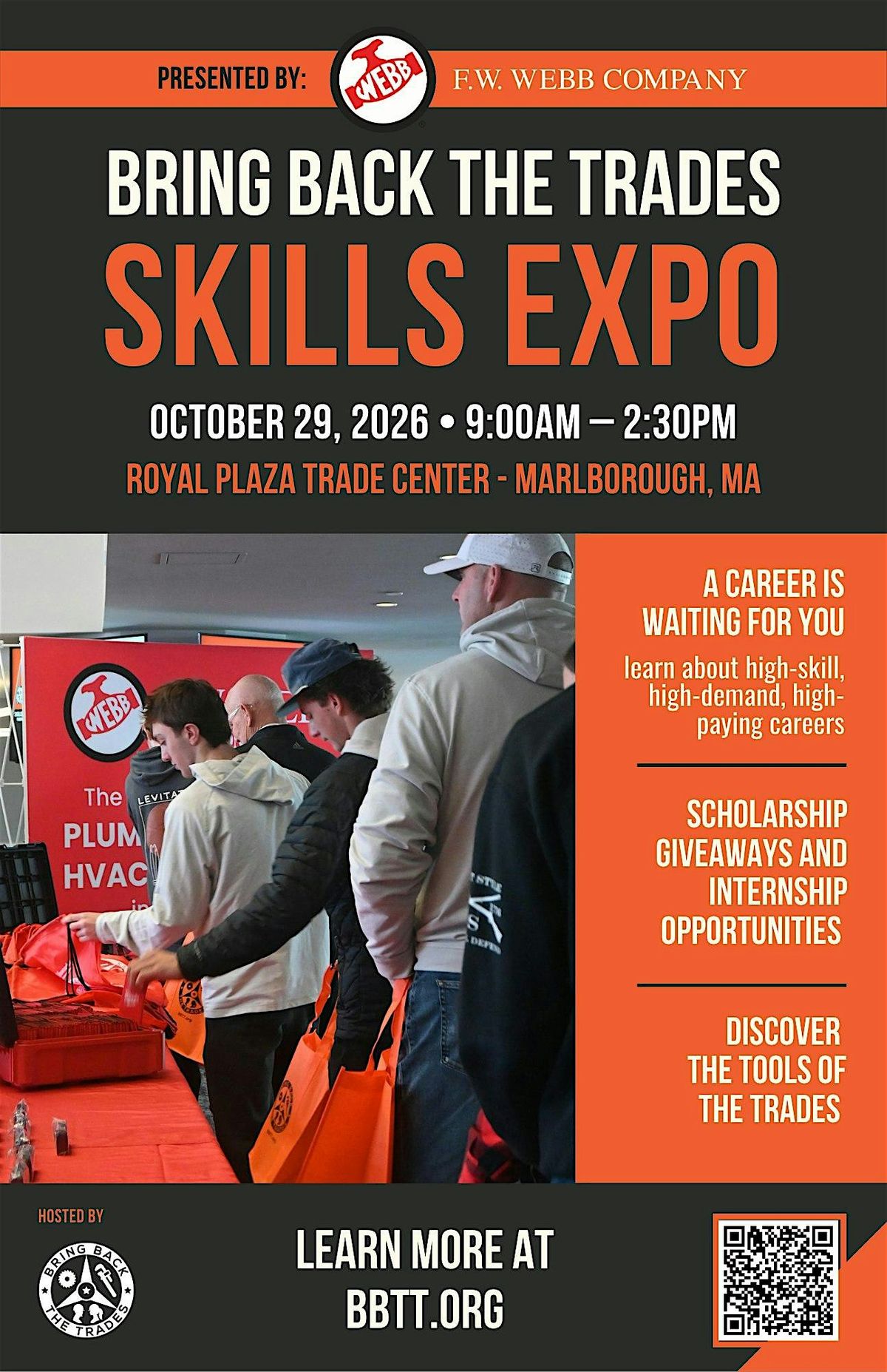 The Bring Back the Trades Skills Expo in Marlborough, Mass. is presented by with Platinum Support from , and , will be our largest event to date—with 5,000+ students, parents, educators, and industry professionals expected to attend. Add your business to the list – and support the future of the trades!