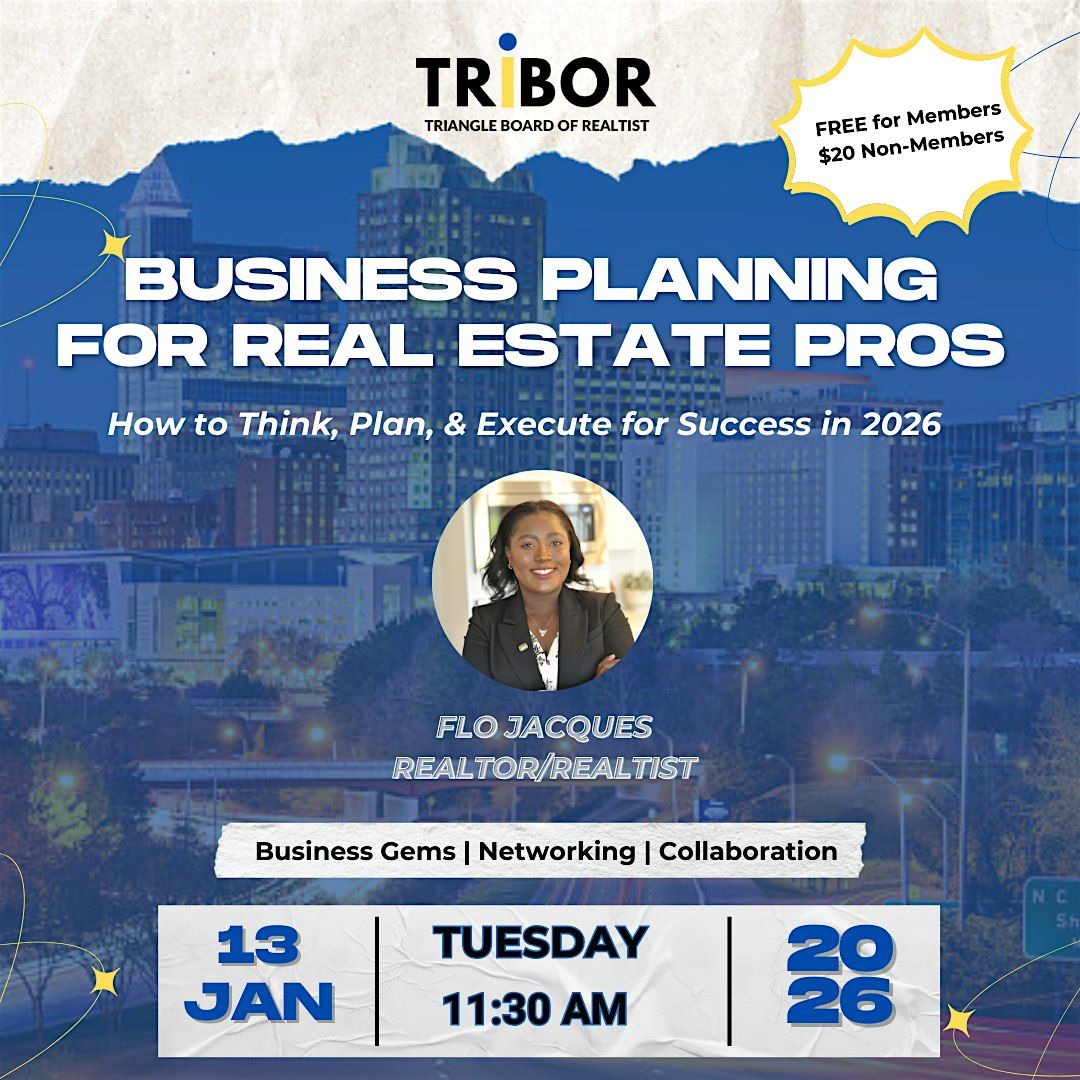 Join us for TRIBOR's fist general body monthly membership meeting of the year! Our education session will be lead by Flo Jacques of The Flo Estates. A focused, forward-looking session for real estate professionals ready to sharpen how they think, plan, and execute. We’ll break down practical strategies to help you build a clear business plan, make smarter decisions, and position your business for sustainable success in 2026 and beyond. Come learn from seasoned professionals as we work towards closing the homeownership gap and become better stewards of fair housing initiatives.