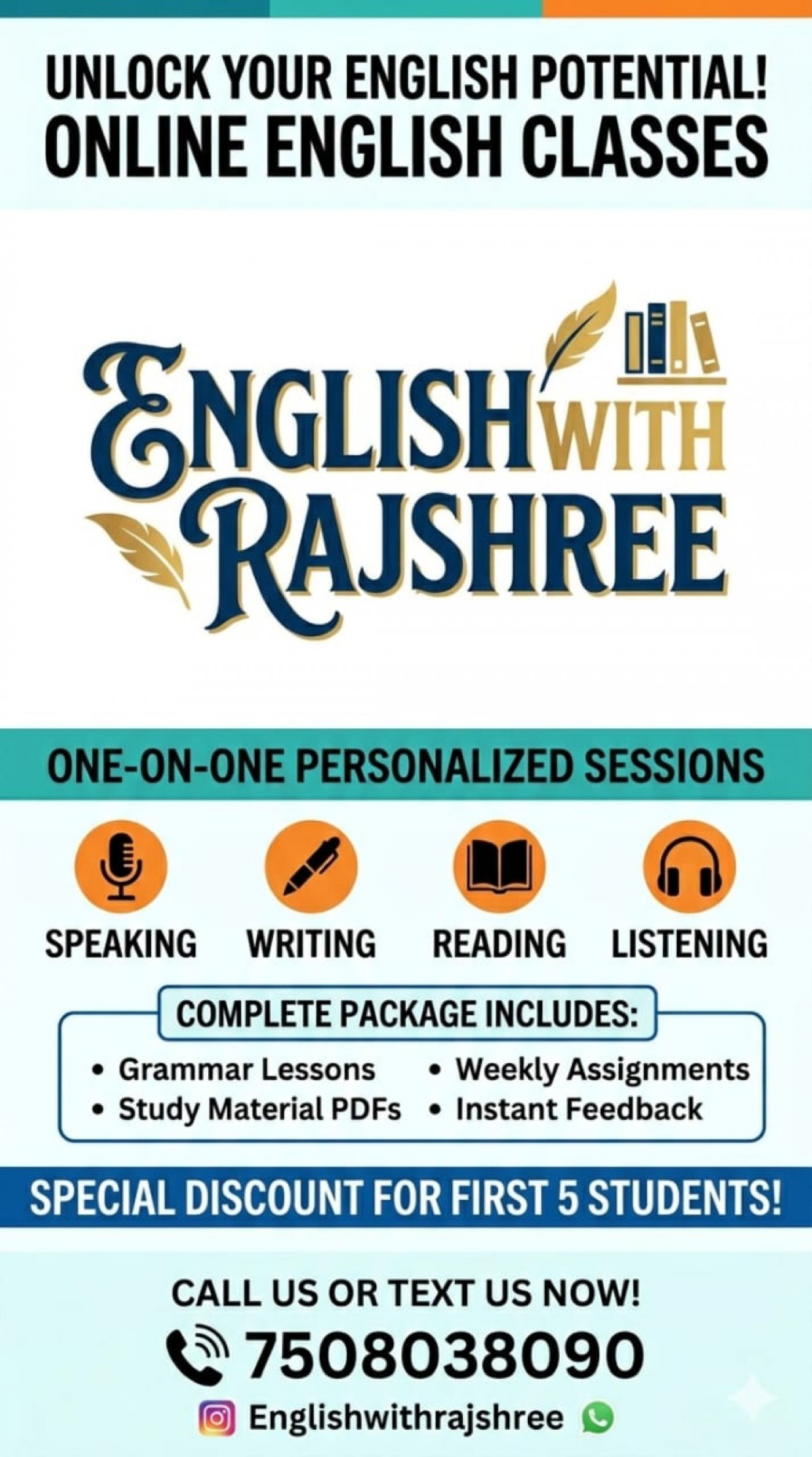 ENGLISH CLASSES FOR ALL AGE GROUPS WHICH INCLUDES ALL 4 MODULES OF ENGLISH LANGUAGE.