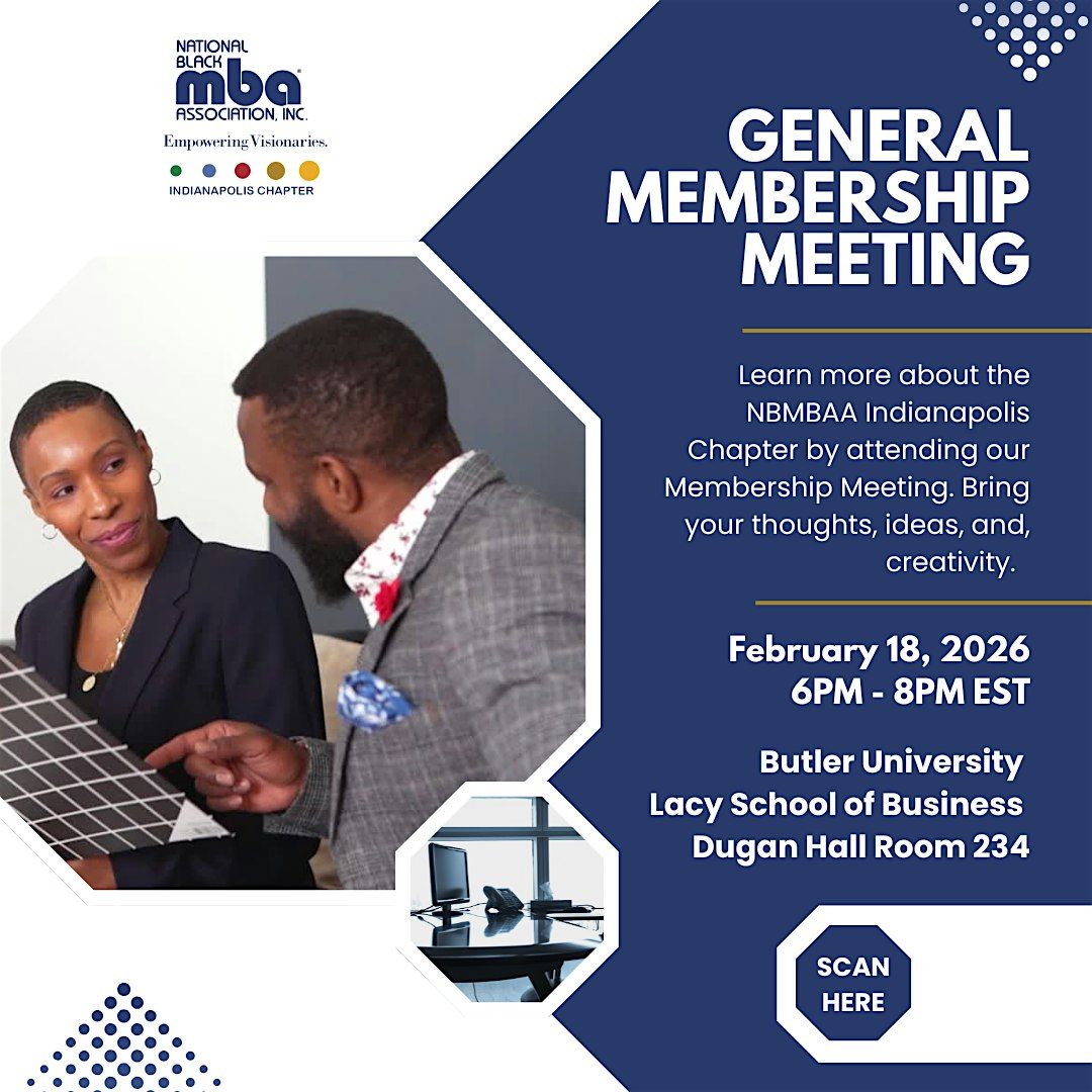 Interested in learning more about the National Black MBA Association, Inc. Indianapolis Chapter? Join us at our General Membership Meeting in February at Butler University's Lacy School of Business. RSVP for this FREE event today. We are looking forward to hearing your thoughts, ideas, and creativity.