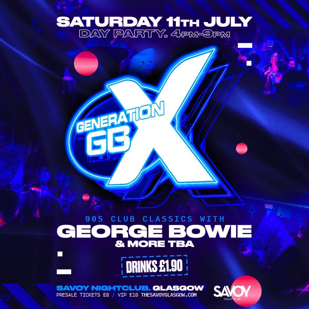 DAY TIME CLUBBING IS BACKGeneration GBX is taking over from 4PM-9PM with the biggest 90s club classics, hosted by George Bowie and more.......
