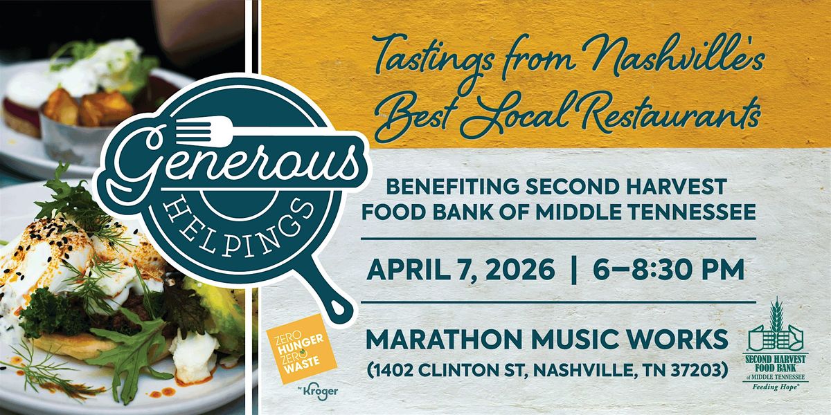 We are excited to announce the return of Generous Helpings for its 19th year! Continually ranked as one of Nashville’s best tasting events, this fundraiser benefits Second Harvest Food Bank of Middle Tennessee, and guests are invited to eat, drink, and give back. More than 30 of Nashville’s favorite restaurants will gather for a tasting showcase of some of the city’s best food. Past winners include Soy Cubano, Street Injera, and Tennessee Cobbler Company. There is always something for everyone, sweet and savory - not to mention wine and craft beer included in your ticket.