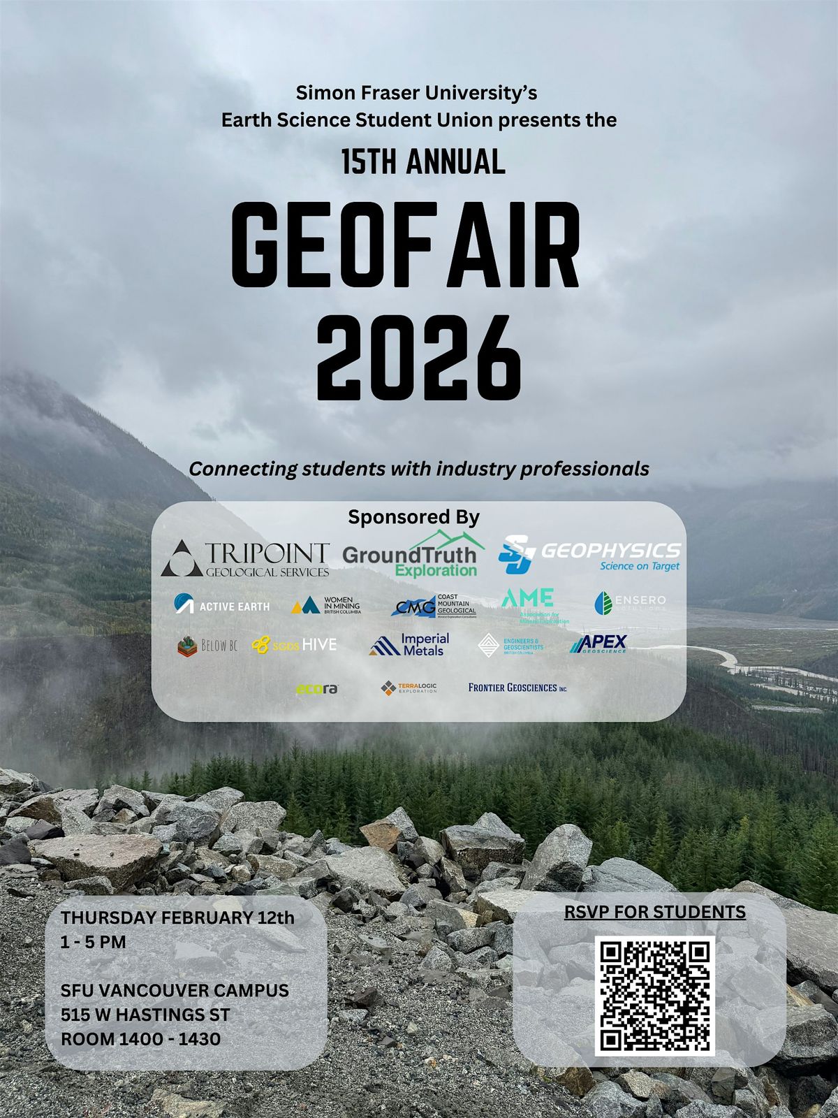 GeoFair is the Earth Science Student Union’s annual networking event. Come talk with industry professionals about careers in Earth Sciences.About this Event