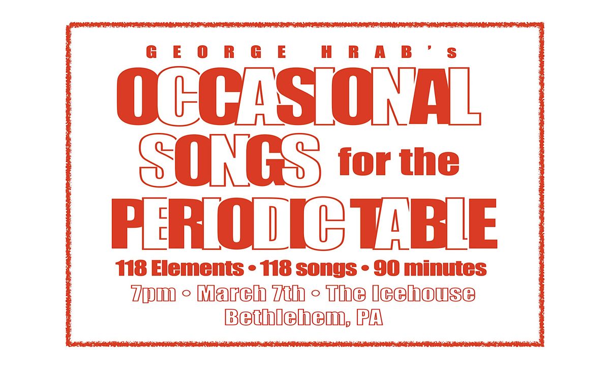 Initially started as a compositional exercise, George Hrab's effort to write one song for each and every element on the periodic table eventually became an inspired "geek symphony," lauded as both epically silly and surprisingly smart. With the help of the incredible members of The George HraBand, OSftPT will finally be heard LIVE as it was always intended: with an amazing band blaring through its multi-genred twists and turns, in its entirety. A show not to be missed!