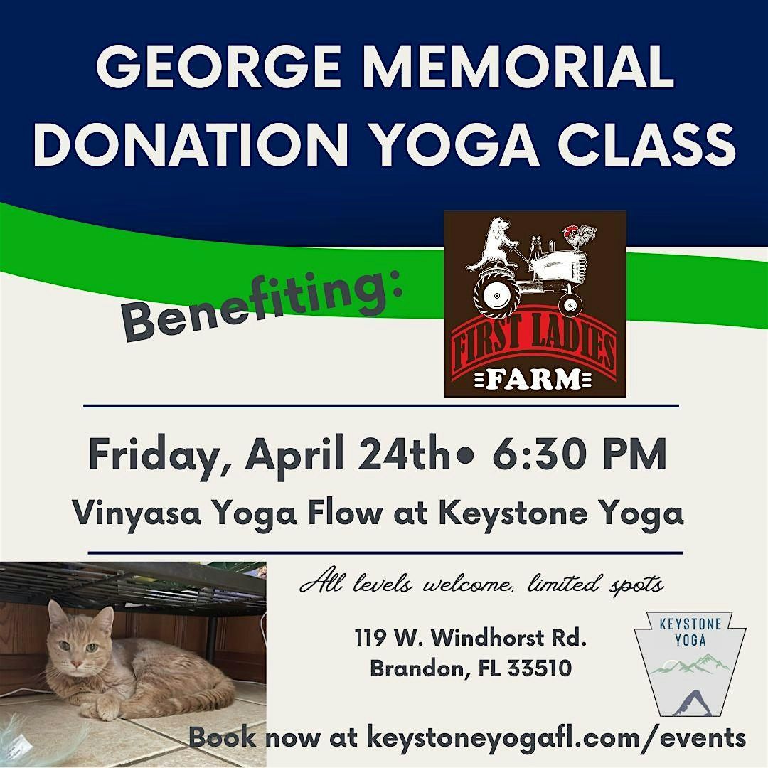 Join us for a donation-based yoga class in memory of Kristen's beloved furbaby, George. This special class will benefit First Ladies Farm and Sanctuary.