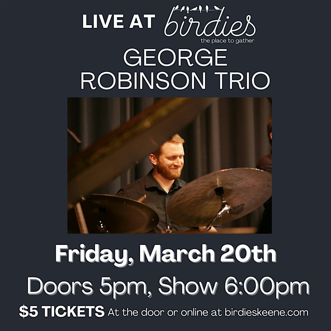 Join The George Robinson Trio for 1 standard set, and 1 set inviting students to join them onstage! Participating students get in free!
