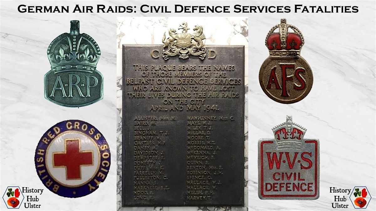 The Belfast Civil Defence Services memorial tablet in Belfast City Hall was unveiled by the Lord Mayor, Alderman Sir Percival Brown, on 5th May 1955. The tablet records the names of 34 fatalities - 28 from Air Raid Precautions (ARP), four from the Auxiliary Fire Service, one from the Women's Voluntary Service, and one from the British Red Cross Society. The Civilian Roll of Honour records that a further six air raid fatalities were members of the ARP but who are not commemorated on the memorial tablet.