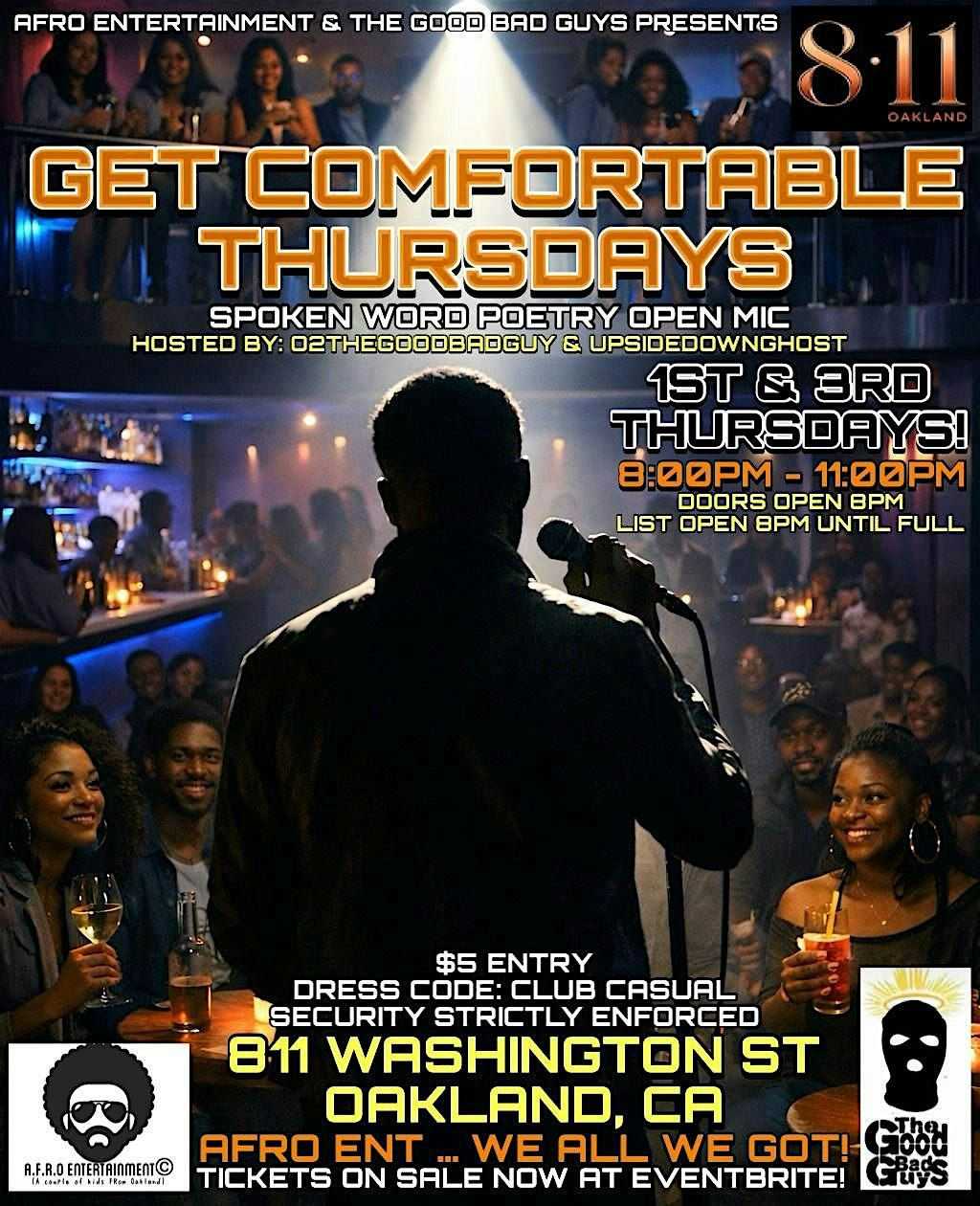 “GET COMFORTABLE THURSDAYS” is the premier platform for local and upcoming artists to showcase their talent in a safe, grown, and sexy environment. This open mic welcomes poets, singers, and rappers of all styles and backgrounds to take the stage and be heard. Every performance is 100% a cappella, putting the focus on raw talent, powerful voices, and authentic expression. Whether you’re an emerging artist or a seasoned creative, this is the space to connect, create, and be celebrated.