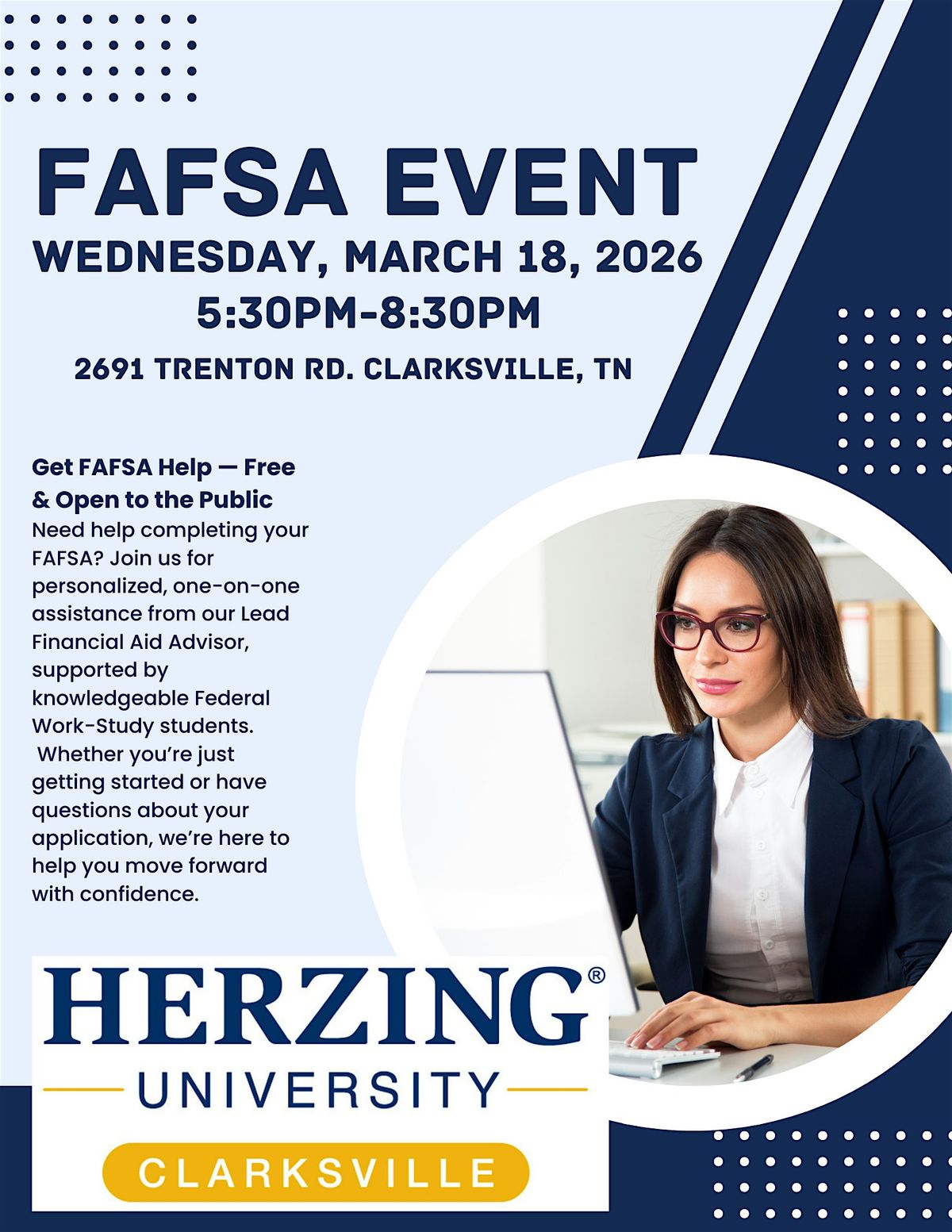 Need help completing your FAFSA? Join us for personalized, one-on-one assistance from our Lead Financial Aid Advisor, supported by knowledgeable Federal Work-Study students.