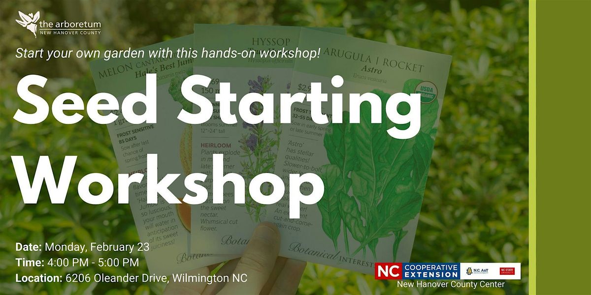 Join us for a free, hands-on afternoon at the N.C. Cooperative Extension - New Hanover County Center & Arboretum, where you’ll learn the basics of starting your garden from seed and take home your very own seeded tray, ready to grow! 🌱✨