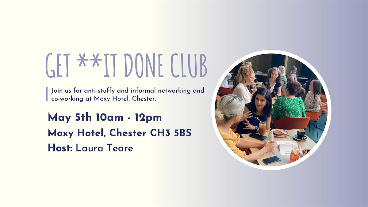To us, we don’t care about your gender, your industry or even if you’re self-employed or employed. If you’re feeling like an under-dog, have a naggy voice in your head telling you you’re not good enough, or you need to get **it done, then there is space for you! GET **IT DONE CLUB Chester meets at Moxy Hotel, which is the perfect setting to chat with new connections and share your ideas, experiences and insights with like-minded people, in an environment that encourages collaboration over competition.