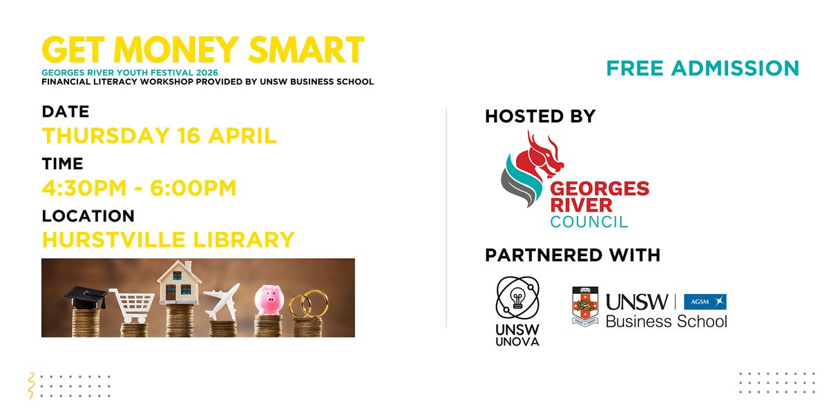 Kickstart your future at Georges River Youth Festival 2026 with this hands-on financial literacy workshop designed to help young people take control of their money with confidence. Delivered in partnership with UNSW Business School and UNOVA, and led by Dr Natalie Oh, the session goes beyond basic budgeting - exploring real-life money decisions, saving habits, and how to align finances with your goals and lifestyle.