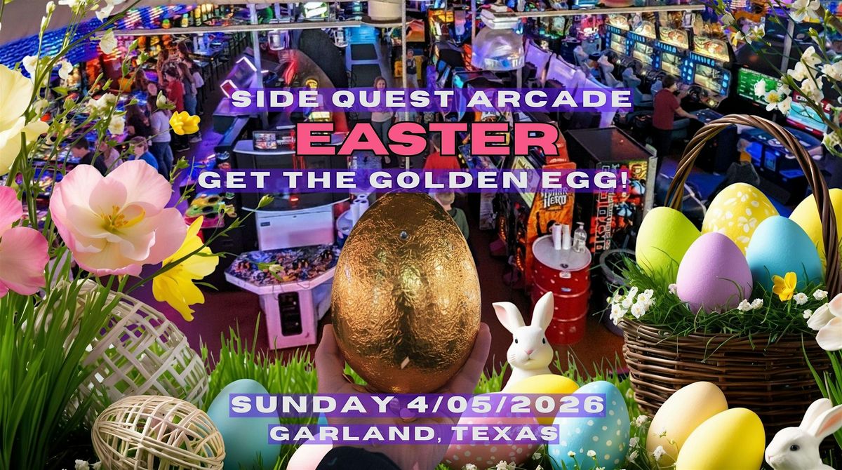 Looking for fun Easter activities? Have you been searching high and low for Easter things to do for kids and families in the DFW metroplex 2026? Then, Join Side Quest Arcades in Garland, TX at Firewheel Town center on Easter, 4/05/2026, for unlimited All day fun for one low price!! 11.50 for the wristband that gives unlimited all-day gameplay inside the arcade!!! On Easter Sunday only Receive a free golden egg with each wristband, purchase while supplies last! Eggs are filled with prizes, large and small, including free passes, tokens and more!!! Don't miss this deal, see y'all soon.