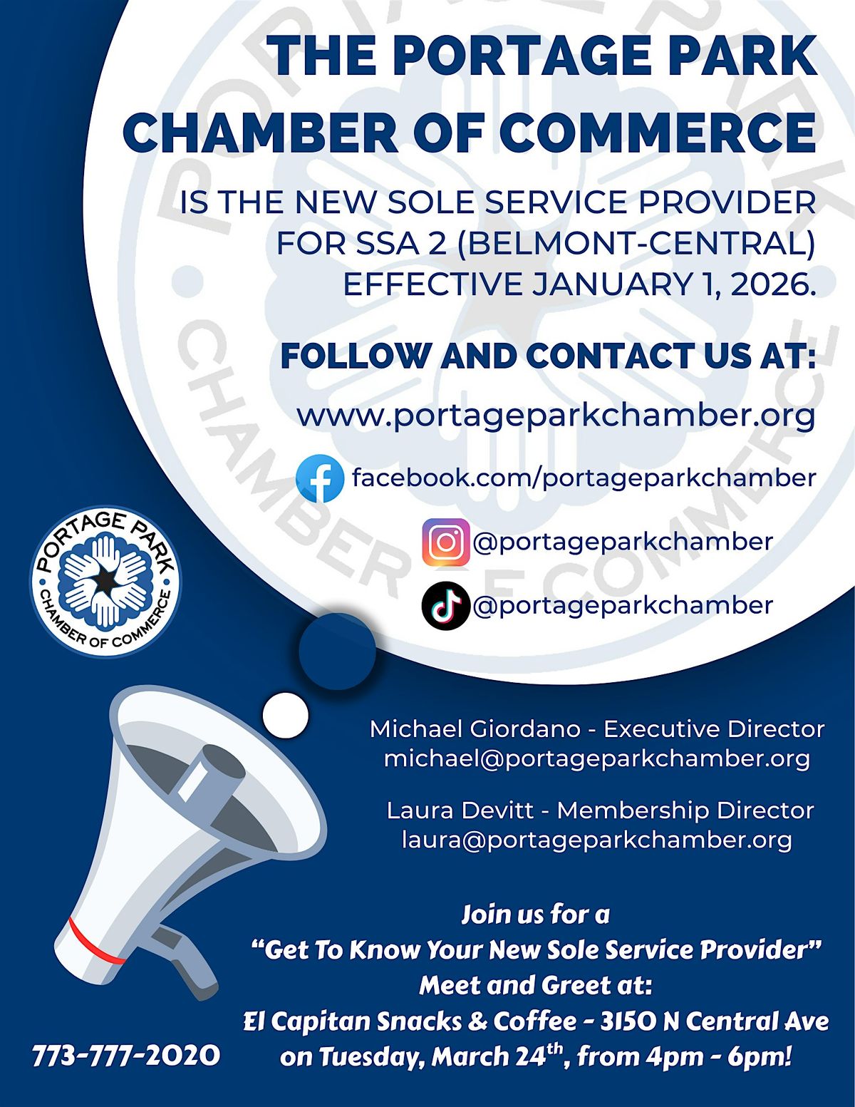 The Portage Park Chamber of Commerce invites business owners in the SSA 2 (Belmont Central) district to stop by and meet the team now serving as the district’s Sole Service Provider.