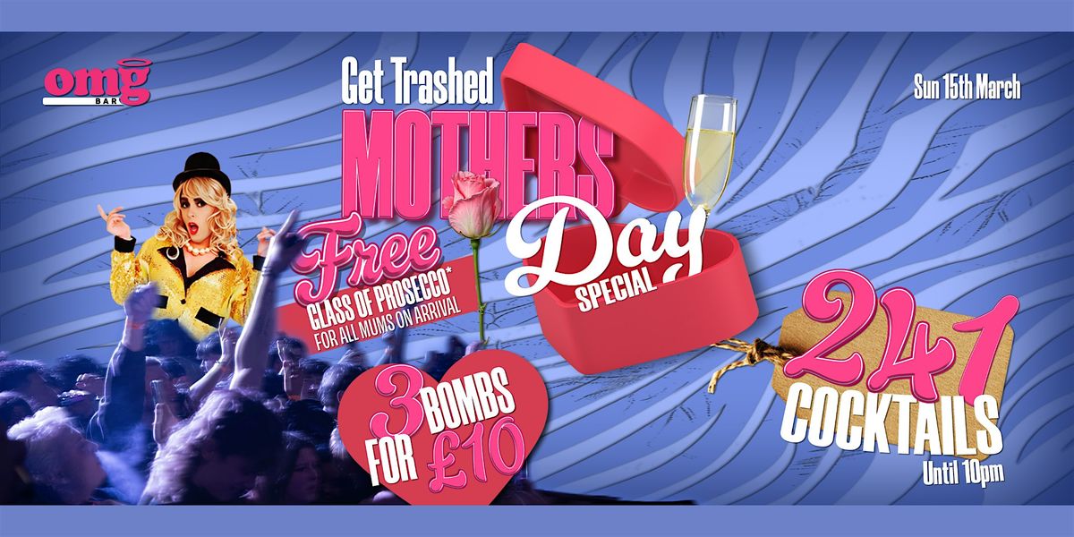 Celebrate Mother’s Day the OMG way! Glam & giggles with drag queen Trayla Trash. Free prosecco for mums, 2-4-1 cocktails, 3 bombs £10. 8pm.About this Event
