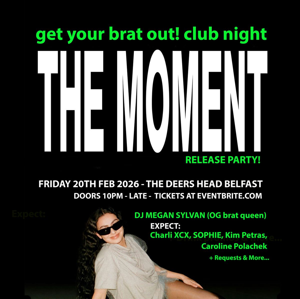 Get your brat out! club night - The Moment Release Party at The Deers Head Belfast - Friday 20th Feb 2026 - Doors 10pm - Late
