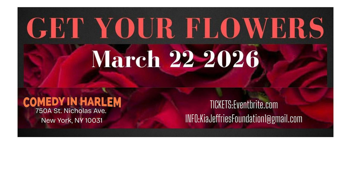 Get Your Flowers is a signature fundraising gala presented by Kia Jeffries Giving Corporation. Comedy in Harlem is the venue providing Laughter as the background as we GIVE FLOWERS while we raise money for our 24 hour Crisis Network which will provide emergency essential needs including housing...