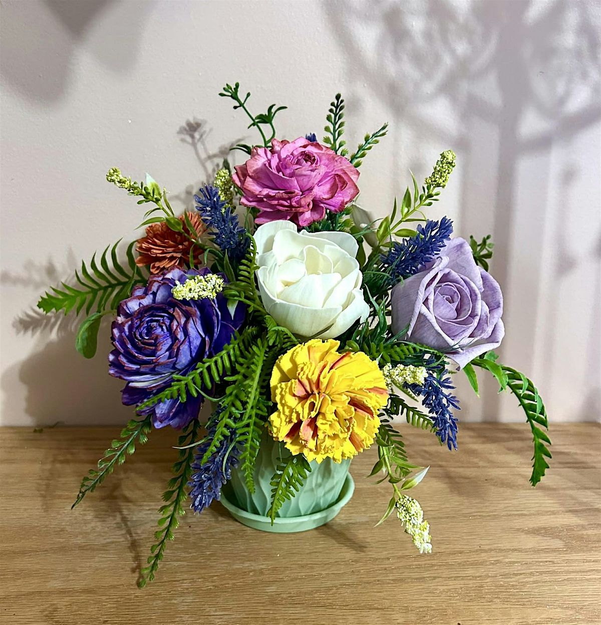 Ready to get crafty this weekend? Join us in person for a fun and hands-on DIY wood floral arrangement class! Whether you're a newbie or a pro, you’ll love creating your own unique piece using hand dyed wood flowers, adding faux greenery as a filler and putting it in a lightweight 4" pot to take home. Relax, unwind, and let your creativity flow in a friendly, laid-back setting. Bring your friends or come solo – either way, you're in for a blast! The class is taught by Brenda from Beautifully Enchanted Custom Floral!