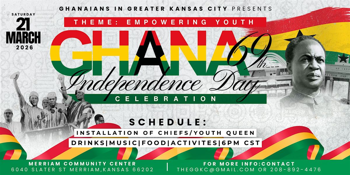Get ready to party and celebrate Ghana's 69th Independence Day with us! Join the fun in person for an unforgettable day packed with music, culture, and good vibes. Whether you’re Ghanaian or just love the spirit, this event is your spot to connect, dance, and honor the journey of Ghana. Don't miss out on the celebration of freedom and unity—see you there!