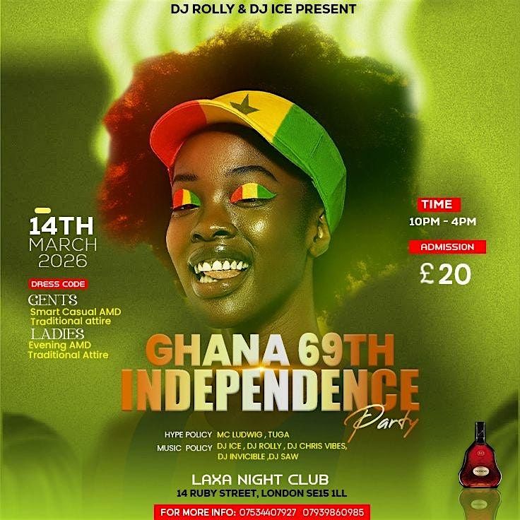 DJ ROLLY & DJ ICE PRESENT GHANA 69TH INDEPENDENCE PARTY GENTS SMART CASUAL & TRADITIONAL ATTIRE, LADIES EVENING WEAR & TRADITIONAL ATTIREAbout this Event