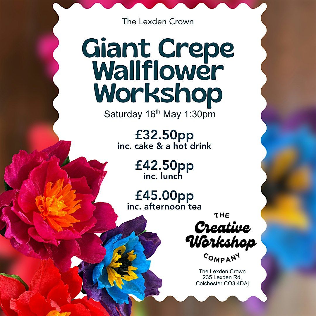 Join us at The Lexden Crown for a creative and relaxing afternoon making your own giant crepe paper wallflower – a beautiful statement piece perfect for your home décor.