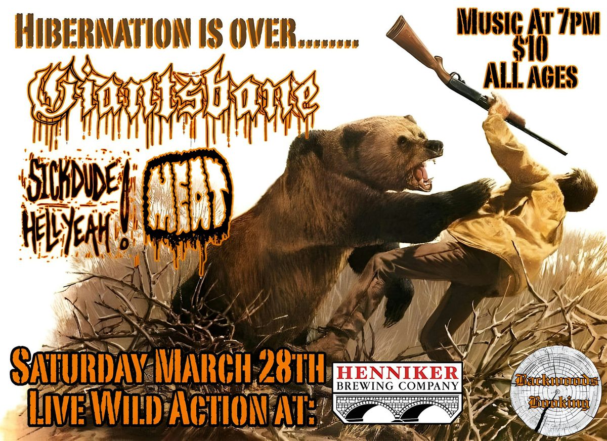 Saturday, March, 28th join us at Henniker Brewing for some live heavy music as Giantsbane, Sick Dude Hell Yeah, and Meat take the stage.