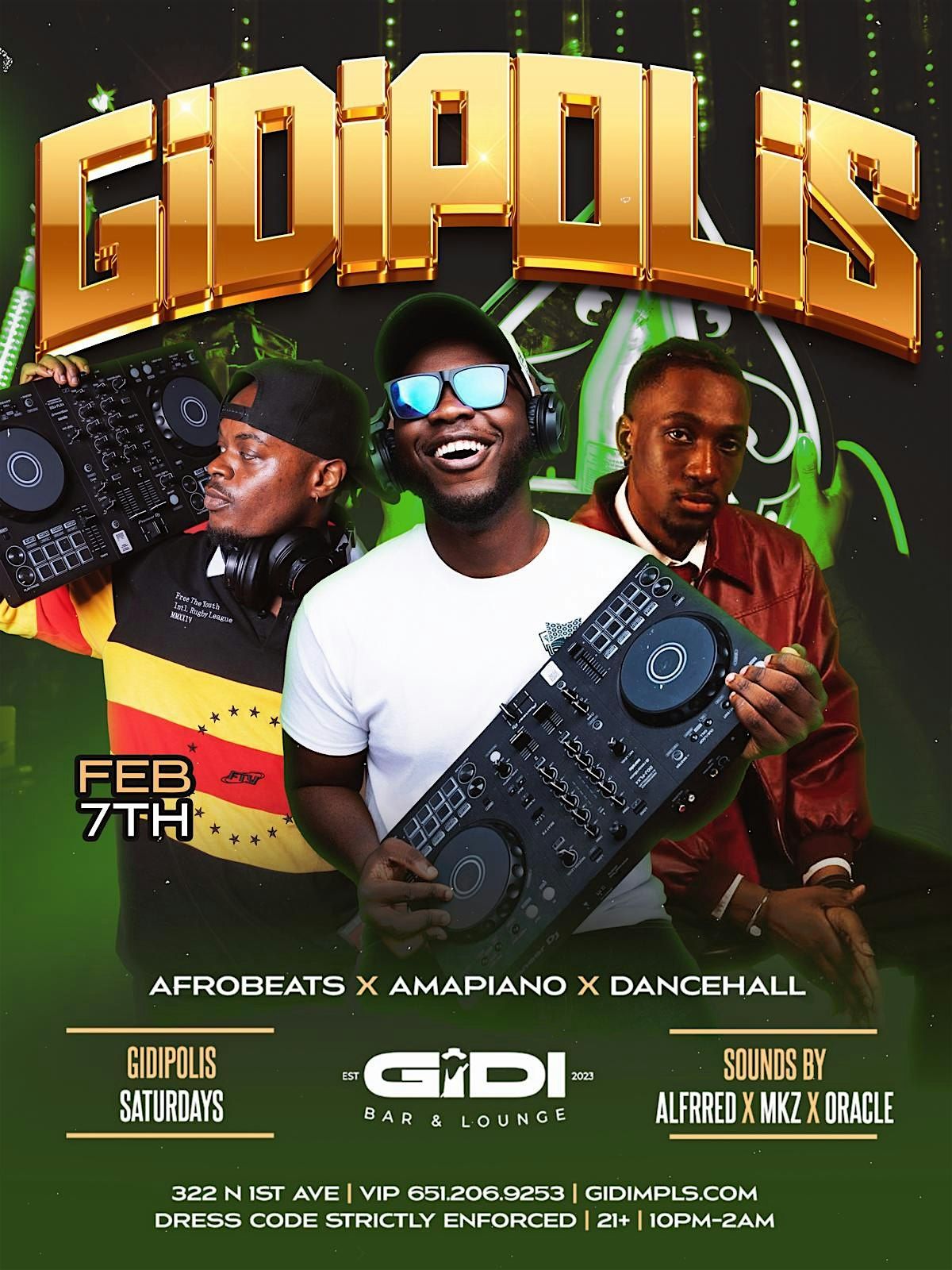 Catch DJs Alfrred, Oracle, and MKZ as they bring electric energy to Gidi Minneapolis for Gidipolis!