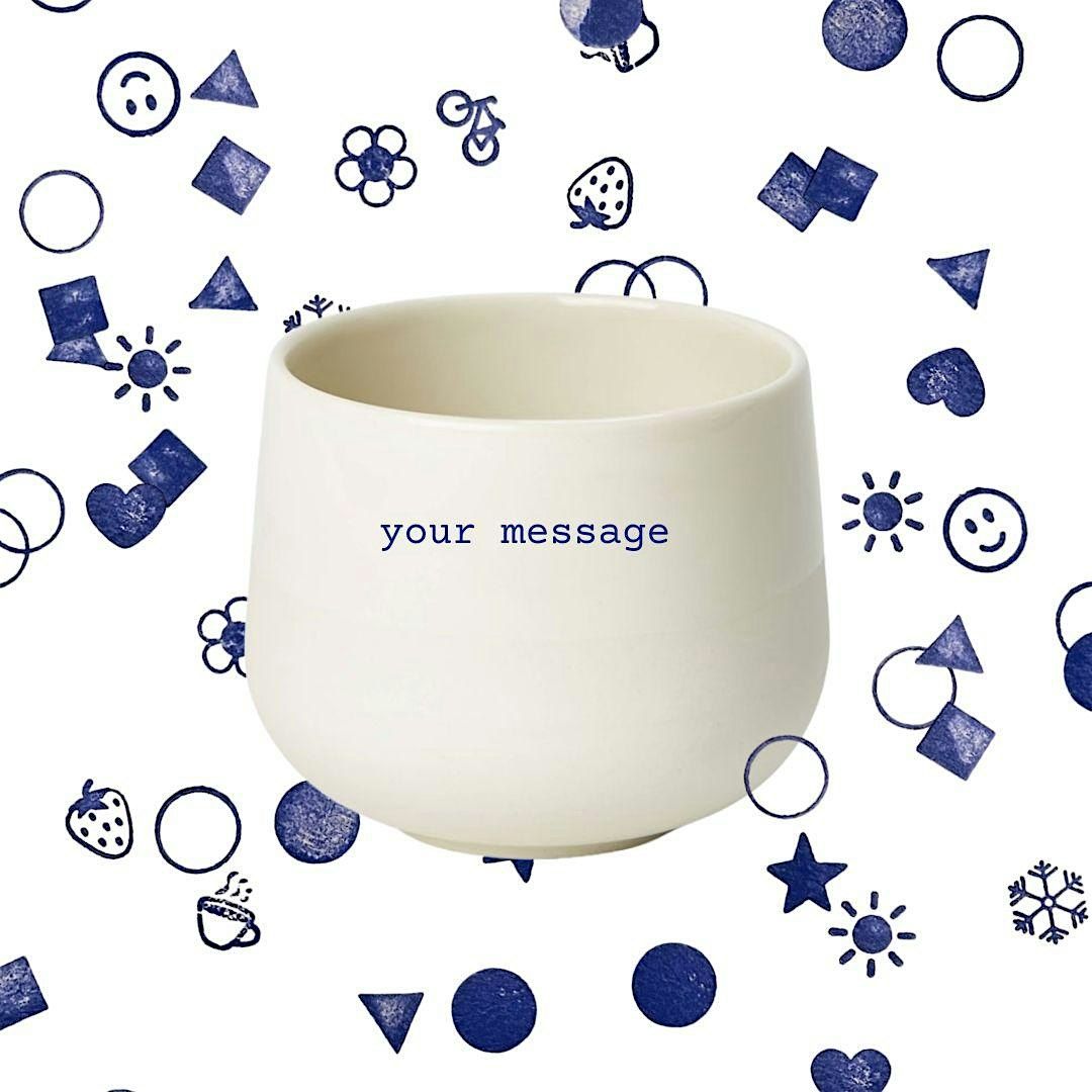 In this hands-on workshop, you can stamp your own message, build a patterned design, or simply add a smiley or fun icon to brighten your cup.