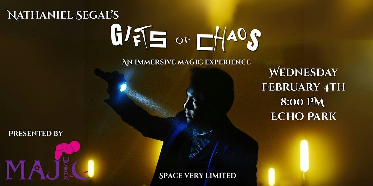 Welcome to the Gifts of Chaos event at the Majic Factory! Magician and inventor Nathaniel Segal shares some of his strongest original magic in this intimate interactive immersive experience! Set in a unique and unexpected space, this show is limited to only 12 participants. Don't miss out on this one-of-a-kind experience that will challenge your perception of reality. Grab your tickets now and prepare to be amazed!