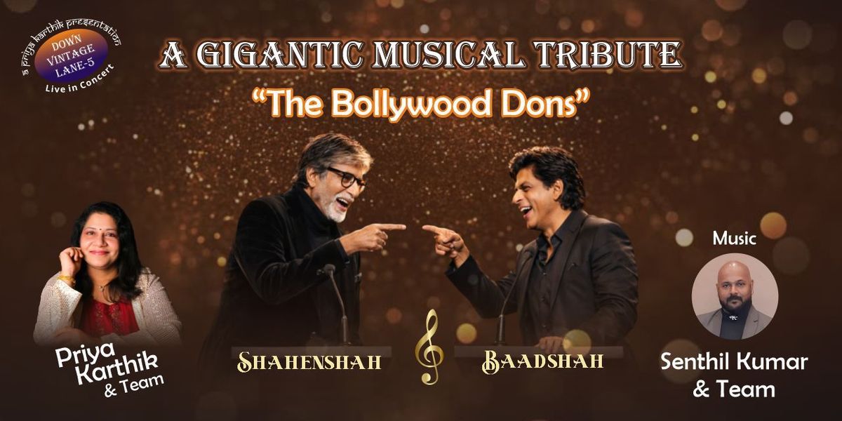 Enjoy this wonderful evening with lively, energetic, dynamic, one-take performance brought to you by our talented team of artists. A gigantic musical tribute to Amitabh Bachchan - the Shahenshah of Bollywood, and Shah Rukh Khan - the Baadshah of Bollywood. The two share a bond that beautifully bridges two generations of Indian cinema. Their on-screen chemistry gave audiences unforgettable moments as father and son in ‘Mohabbatein’, as rivals in ‘Kabhi Alvida Naa Kehna’, and as sharing lighter shades in ‘Kabhi Khushi Kabhie Gham’. Their excellent performances have truly carried mutual respect and immense star power. And off -screen, the warmth between them is simply admirable; they hold each other in the highest regard. Big B praises SRK’s energy, wit, and dedication; while SRK expresses his deep admiration for Amitabh’s unmatched aura and discipline. Their bond is not just about stardom; it is about legacy, respect, and the joy of seeing the two icons come together as one. Both these actors are often addressed with their monikers - Shahenshah and Baadshah. ‘Shahenshah’ made Amitabh Bachchan the ‘Shahenshah’, so did ‘Baadshah’ to Shah Rukh Khan. Do not miss this event !