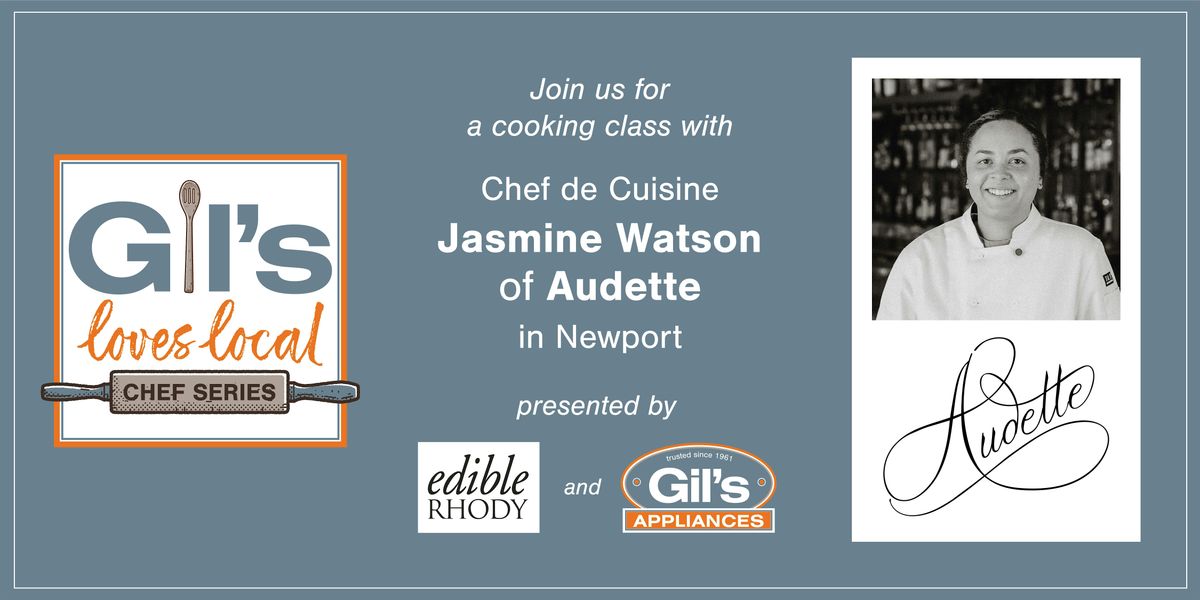 Join us as we welcome James Beard Award–nominated Chef de Cuisine Jasmine Watson of Audette in Newport to the Gil's Appliances Thermador demonstration kitchen. Watson will share her French-inspired approach to cooking with an emphasis on local, seasonal ingredients. She will demonstrate her techniques and kitchen wisdom while preparing thoughtfully crafted dishes. Enjoy generous tastings paired with wine and take home a goody bag with special giveaways.