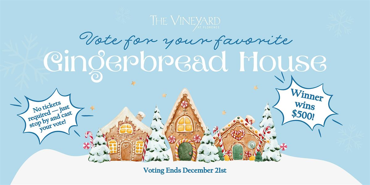 Stop by The Vineyard at Florence to see the incredible entries in our annual Gingerbread House Competition!