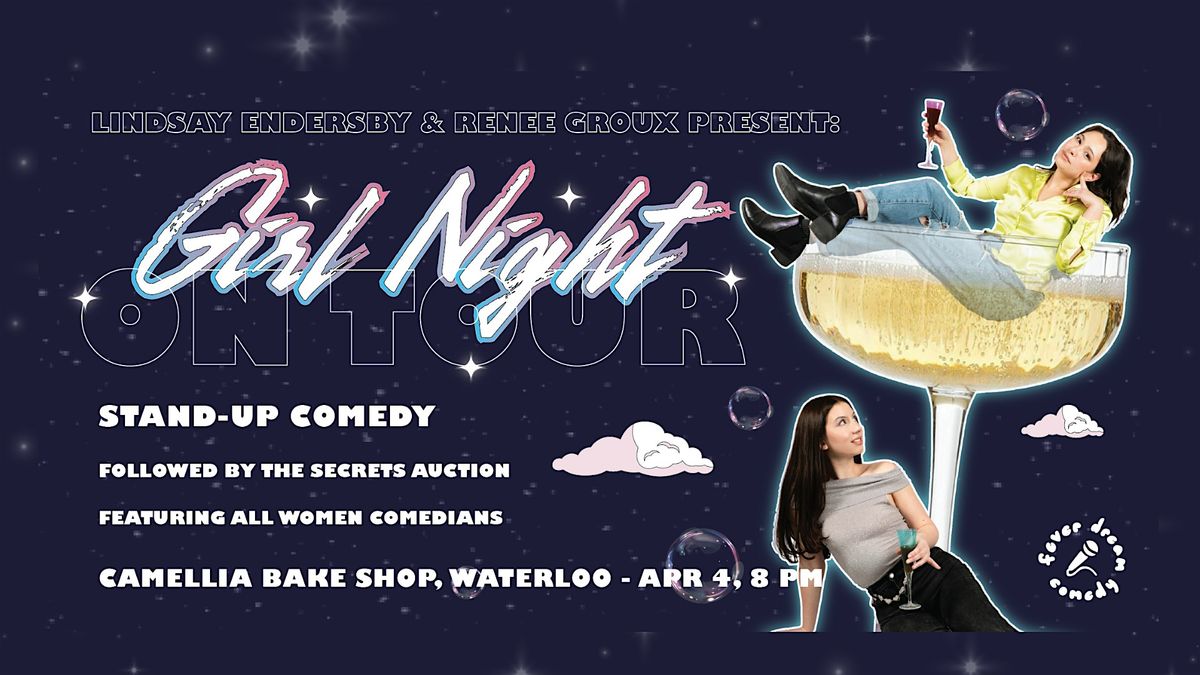 Girl Night is a night of live stand-up comedy featuring an lineup of all women comedians from all over Ontario. This is your chance to see critically acclaimed acts and rising stars all wrapped up in a fun environment curated for women but enjoyed by all! Fall in love with your hosts Lindsay and Renee, see incredible comedy, then play the Secrets Auction where you bid for local prizes with your juicy secrets and confessions. This is THE girl's night out you've been looking for!