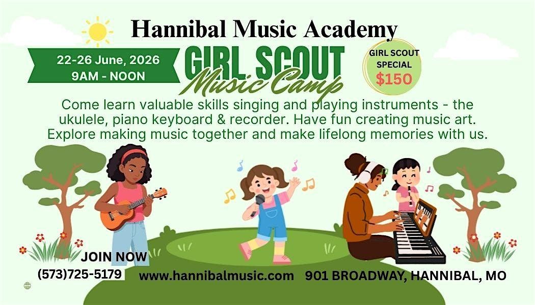 Girl Scouts will have so much fun singing and playing the ukulele, recorder, piano, and making music art.