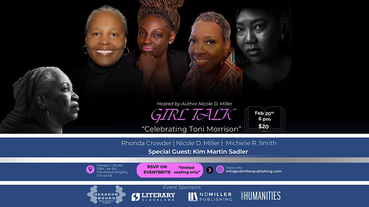 Info: Conversation celebrating Toni Morrison with panelists featuring: Kim Martin Sadler, Michelle Smith & Rhonda Crowder.