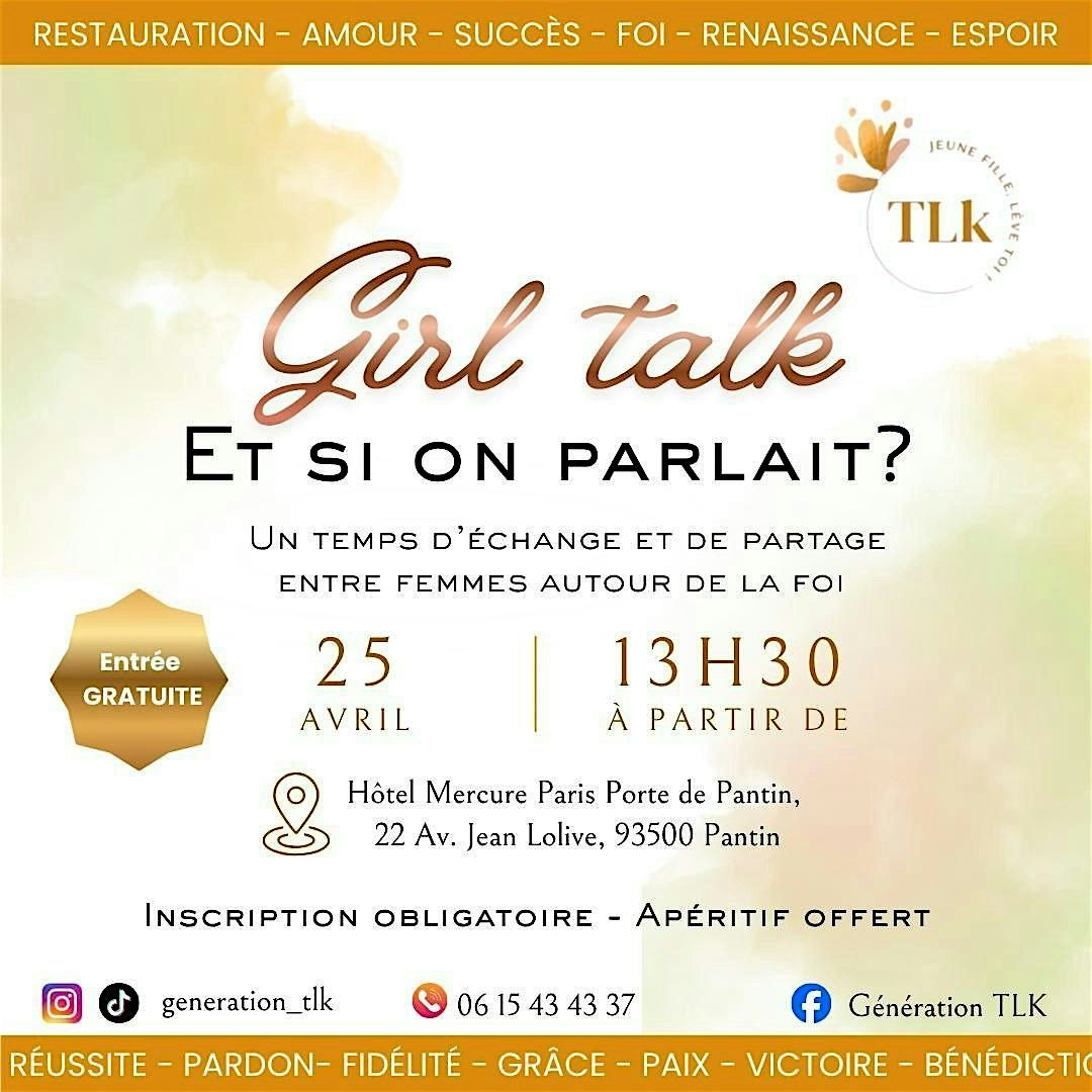 Girl Talk : Et si on parlait ? (SUR INSCRIPTION!!) by GÉNÉRATION TLK
