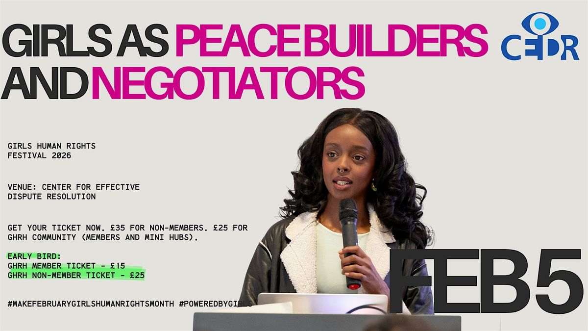 The Girls Human Rights Festival 2026 proudly presents Girls as Peacebuilders and Negotiators, a powerful day dedicated to equipping young women with the skills to influence dialogue, resolve conflict, and lead peacebuilding efforts worldwide. This event will highlight the crucial role girls and young women play in creating just, inclusive, and sustainable societies.