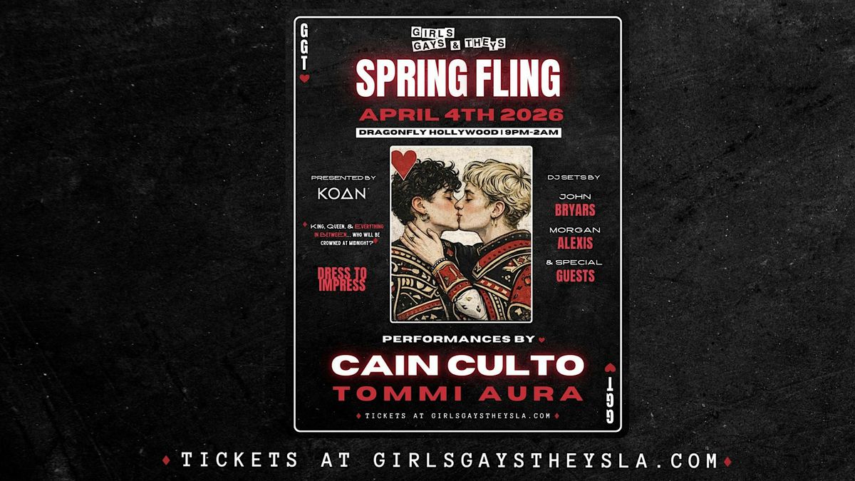Join us on Saturday, April 4th at Dragonfly Hollywood for our Spring Fling, imagine the nostalgia of the classic school dance and throws it into a late-night Hollywood club... where the corsages are optional, the outfits are better, and the dance floor is full of girls, gays, theys, and everyone in between.
