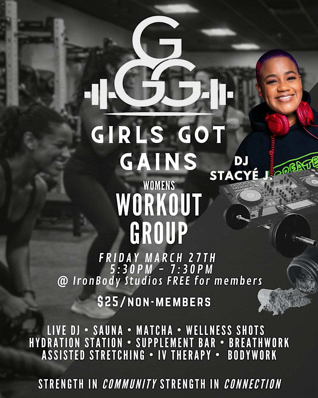We’ll also be featuring rotating vendors at each Girls Got Gains event — juice, coffee, or other fresh food options. Vendors will change each time, so every session feels a little different.