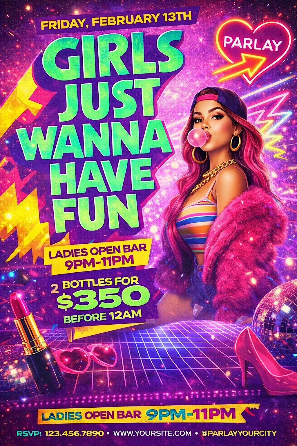 GIRLS JUST WANNA HAVE FUN current — a Friday afterwork into nightlife experience with elevated vibes, premium cocktails, and a fashionable crowd.