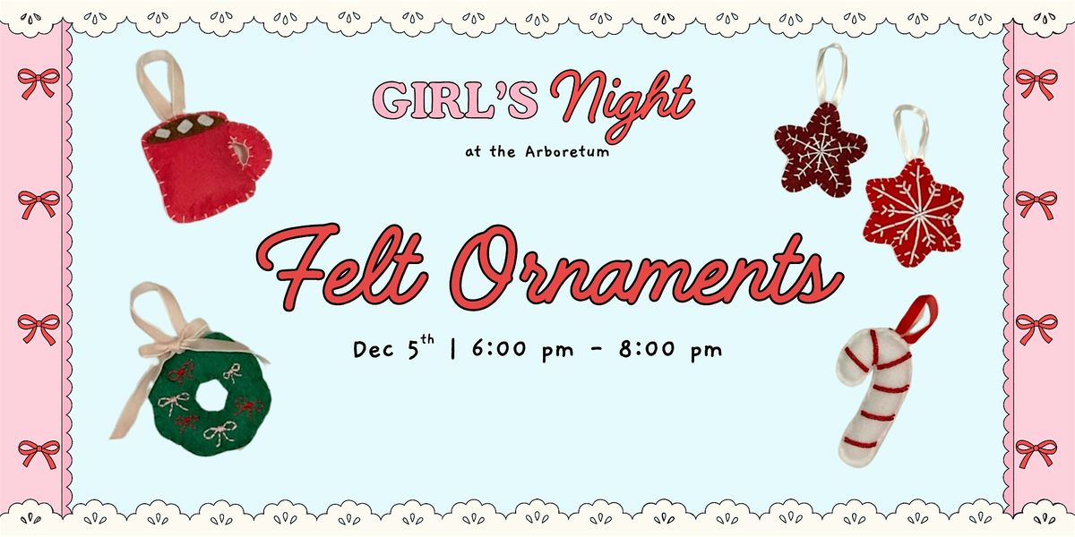 Get into the holiday spirit with a festive Girls’ Night at the Carleen Bright Arboretum! Join us on Friday, December 5th from 6:00 PM – 8:00 PM at The Whitehall Center for a cozy evening of creativity and fun. Guests will learn how to handcraft adorable felt ornaments, perfect for gifting or adding a handmade touch to your tree. Gather your girlfriends, sip something warm, and enjoy a relaxed night of crafting and laughter in a beautiful holiday setting.